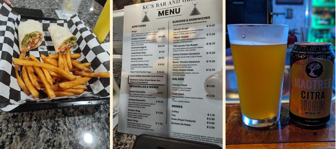KC's boasts a warm, friendly atmosphere that many love. The quick service keeps patrons satisfied, and tasty menu items like the smash burger and deep-fried deviled eggs often earn rave reviews. Sports events draw lively crowds. Much excitement builds around the bar, especially on weekends. Plus, happy hour deals attract both locals and visitors.